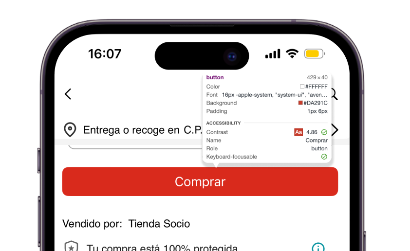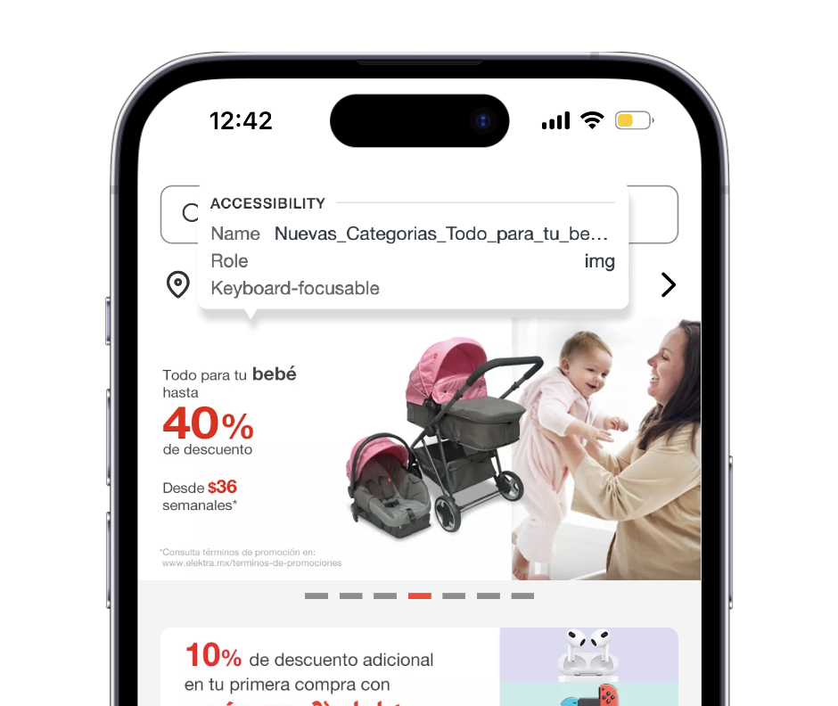 Comprueba la accesibilidad, para saber si el desarrollo es apto para cualquier usuario, se debe realizar una auditoría de componentes y se examinan todos los elementos de la experiencia en la aplicación. Sugerimos proporcionar una lista de los problemas que se encuentren y que se deben solucionar.