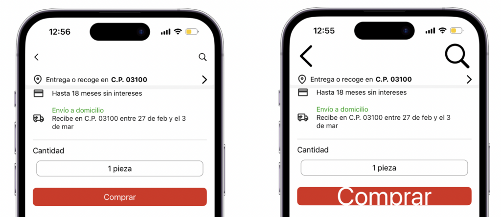 Mantén una jerarquía de información coherente independientemente del tamaño de la fuente. Por ejemplo, mantén los elementos primarios en la parte superior de la pantalla, aunque el tamaño de la fuente sea muy grande, para que los usuarios no pierdan de vista estos elementos.