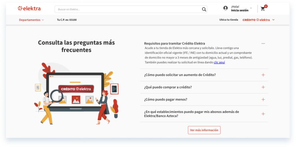Pero como decimos, en web el lenguaje no solo es escrito, también tiene un gran peso el lenguaje visual. Fotos, vídeos, ilustraciones y patrones contribuyen a transmitir mensajes tanto como lo hacen las palabras, y todos los lineamientos para el uso de imagotipo de Elektra los encuentras en el brandbook. Incluir en Harmonía los requisitos que debe cumplir todo el material gráfico que se suba al producto -tanto de estilo como técnicos (por ejemplo recomendando el uso de los formatos WebP o especificando los filtros que se deben aplicar a las imágenes antes de su publicación)- así como un enlace a un repositorio de imágenes donde los diseñadores podrán acceder a una selección previamente aprobada puede resultar muy útil. Para más información ve la sección de Imágenes e Ilustraciones.