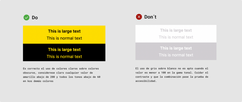 Parámetros de color para mejorar la accesibilidad de los usuarios.