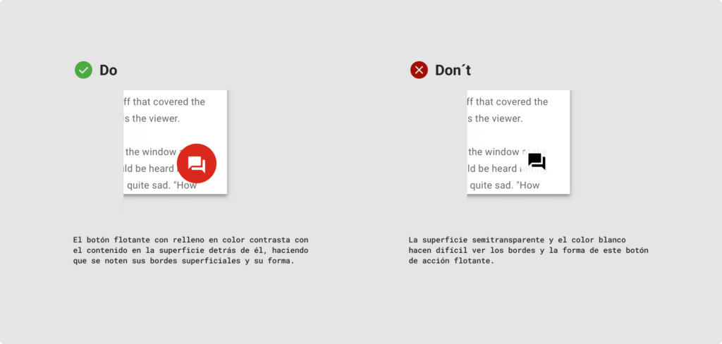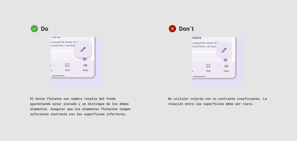 2. Reflejan relaciones espaciales, como la sombra de un botón de acción flotante que indica que está separado de una colección de tarjetas.