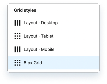 Para garantizar una correcta posición, dimensión y espaciado de los elementos que conforman este Design System utilizaremos una retícula de 8 px como referencia en nuestros espacios de trabajo, ya sea en Desktop, Tablet o Mobile que se activa mediante un Grid en Figma configurado a 8 px.