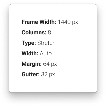 Crear o utilizar layouts de contenido distinto que no estén alineados a esta configuración provoca un desajuste en las medidas y dimensiones utilizadas en el 8 px grid system y en consecuencia la inconsistencia al utilizar los componentes, espaciados, textos y diversos elementos.